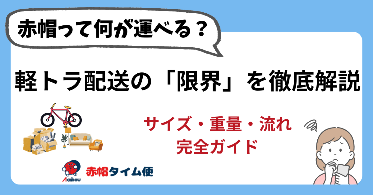 「赤帽や軽貨物便って、具体的にどんな流れで運んでくれるの?」「私の荷物、この小さなトラックに全部載るかしら?」 初めて軽貨物運送を利用しようとする時、多く...